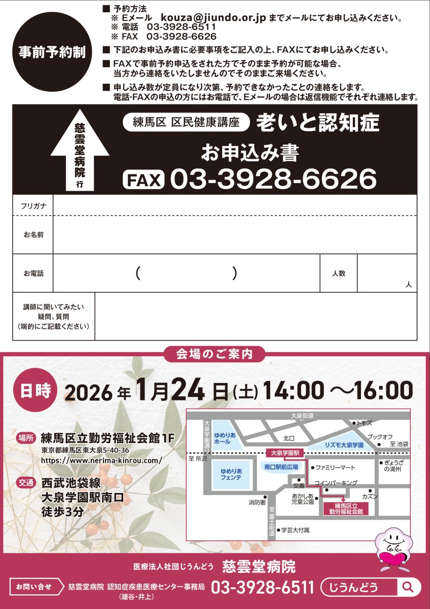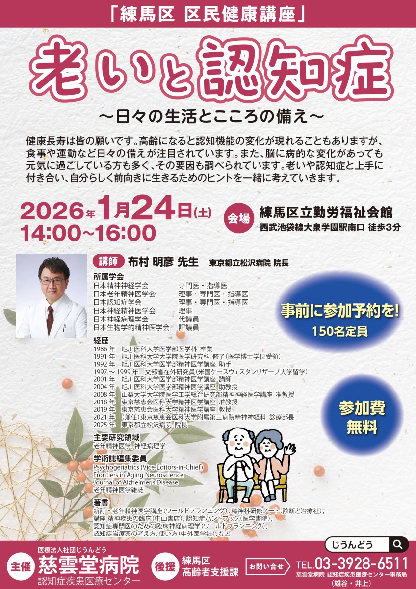 2025年度 練馬区民健康講座 老いと認知症 2026年1月24日に開催します。
